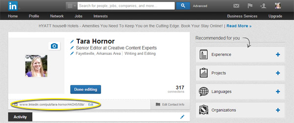 Customizing your LinkedIn URL can be a pain if you have had your profile for a while. However, it’s an excellent way to help clients find you easier when they don’t have your link immediately accessible. Just as with Facebook and Google+, your URL can include your name – www.linkedin.com/in/yourname.