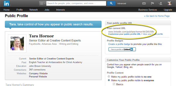 Once you click on that almost unnoticeable “Edit” button, you’ll see a box on the right side of the page with “Your Current URL” as one of the editable options. Click on the link titled “Edit your public profile URL”.